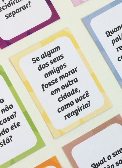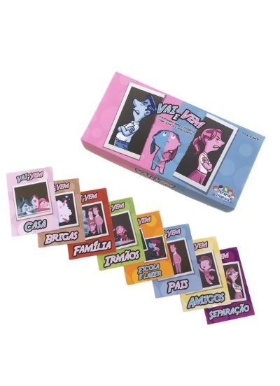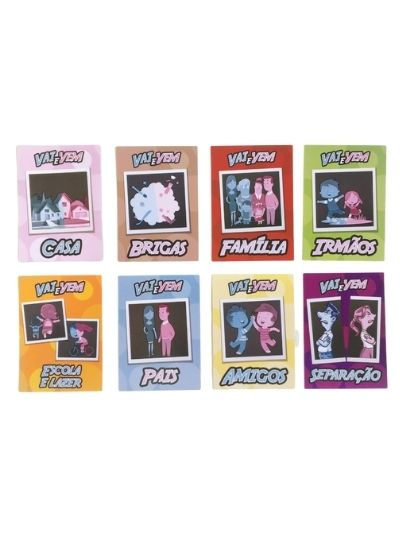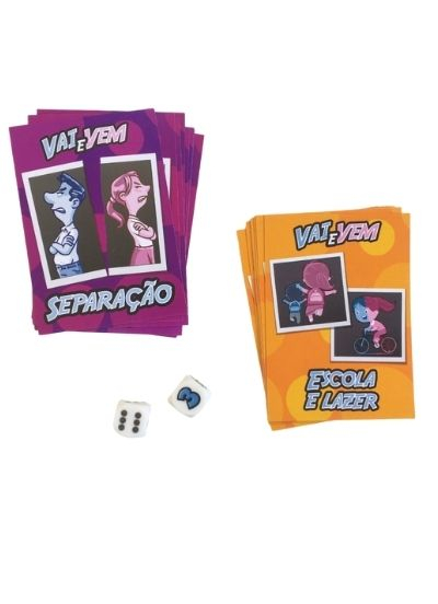 Vai e Vem é um jogo com cartas sobre pais, irmãos, brigas, escola, amigos, e família, entre outros assuntos, para promover uma conversa leve sobre as angústias do divórcio com crianças e adolescentes, enquanto você terapeuta reúne as informações necessárias para ajudá-las a encontrar um significado para as mudanças que estão vivendo.