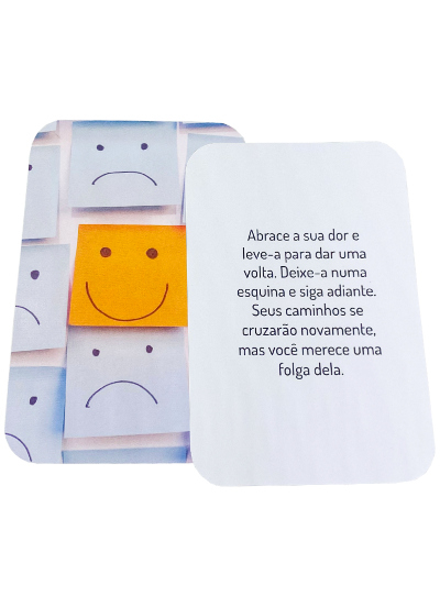 Este conjunto de cards pode ser utilizado para ajudar tanto naqueles dias difíceis em que precisamos de uma forcinha para enxergar o "outro lado da moeda" quanto como auxílio no tratamento da depressão.